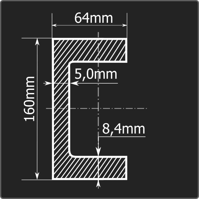 Швеллер стальной горячекатаный с параллельными гранями полок 16П и длиной 12м. Материал - углеродистая сталь. Соответствует требованиям ГОСТ 535-2005.