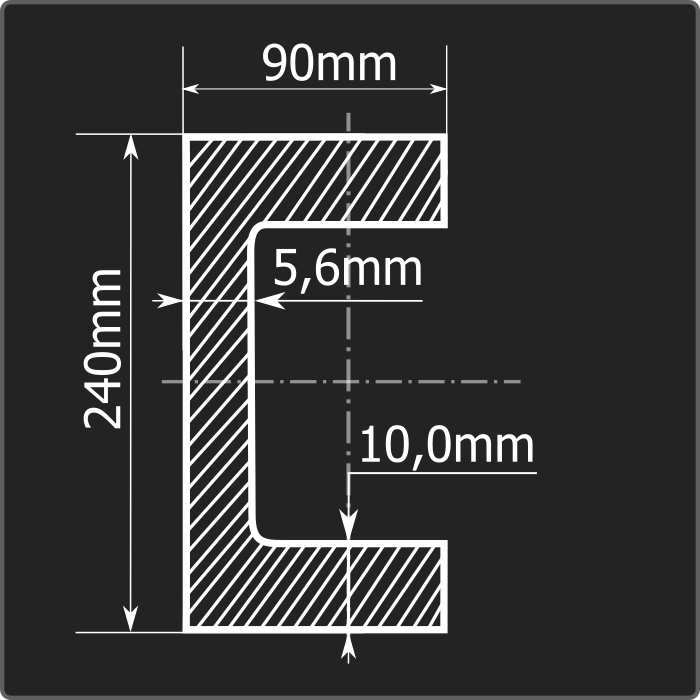 Швеллер стальной горячекатаный с параллельными гранями полок 24П и длиной 12м. Материал - углеродистая сталь. Соответствует требованиям ГОСТ 535-2005.