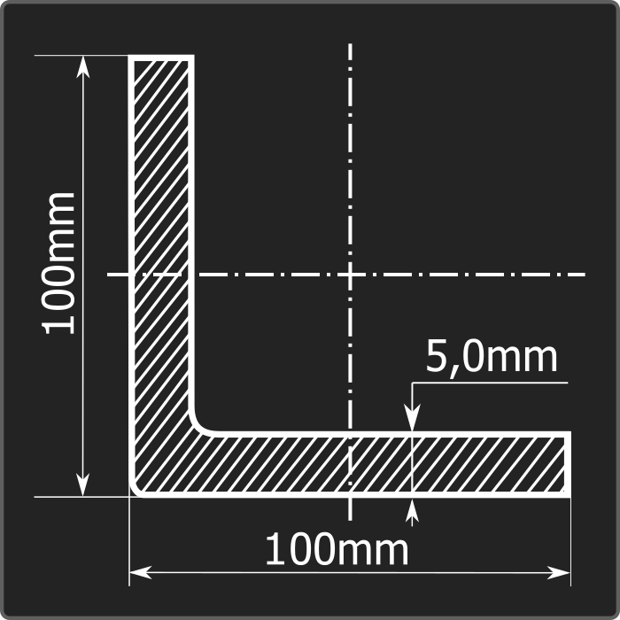Угол стальной холоднокатаный гнутый равнополочный 100*100мм, толщиной 5,0мм и длиной 12м. Материал - углеродистая сталь. Соответствует требованиям ГОСТ 19771-93.