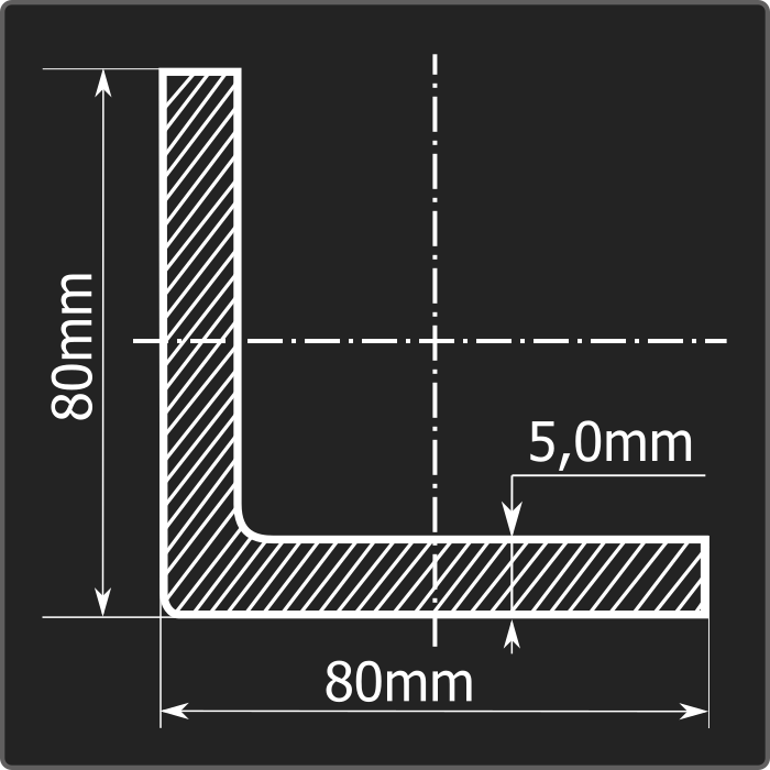 Угол стальной холоднокатаный гнутый равнополочный 80*80мм, толщиной 5,0мм и длиной 12м. Материал - углеродистая сталь. Соответствует требованиям ГОСТ 19771-93.