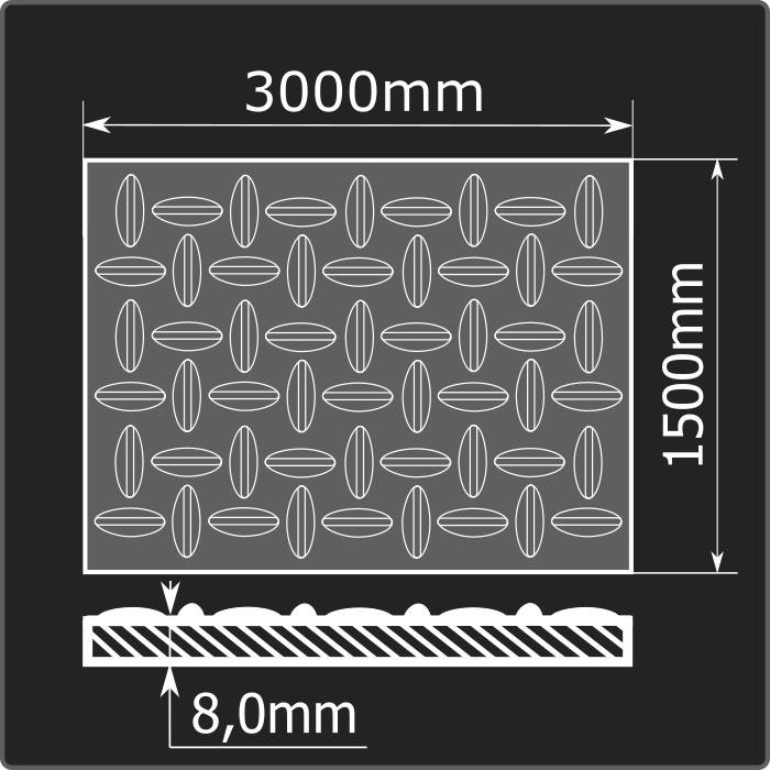 Лист стальной рифленый толщиной 8,0мм, шириной 1500мм и длиной 3000мм. Сталь 3сп. Соответствует требованиям ГОСТ 8568-77.