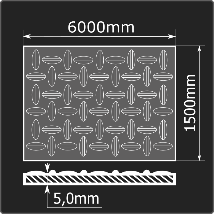 Лист стальной рифленый толщиной 5,0мм, шириной 1500мм и длиной 6000мм. Сталь 3сп. Соответствует требованиям ГОСТ 8568-77.
