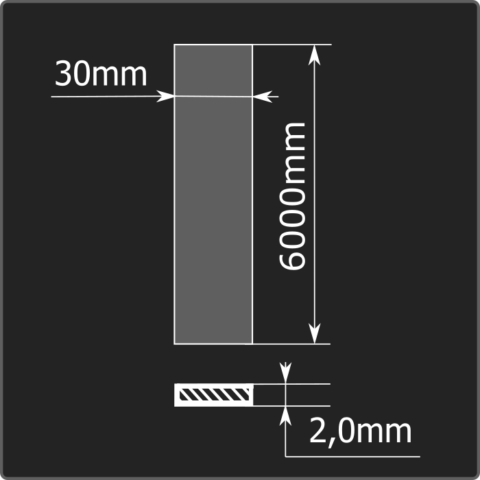 Полоса стальная горячекатаная толщиной 2,0мм, шириной 30мм и длиной 6м. Материал - углеродистая сталь. Соответствует требованиям ГОСТ 103-2006.