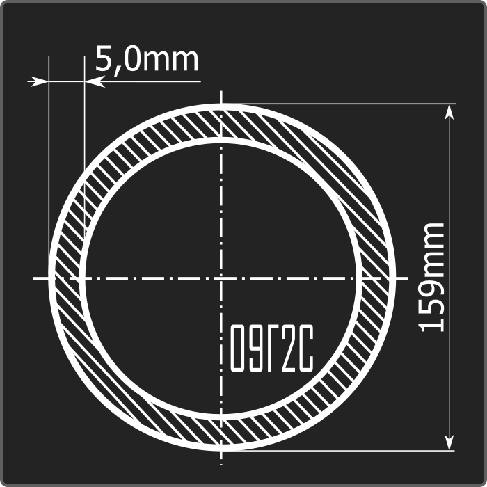 Труба электросварная 159*5,0 09Г2С Феррум 12м Стык ГОСТ 10705-80