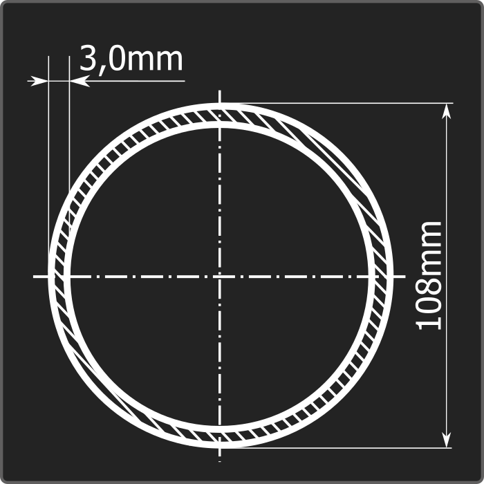 Труба электросварная стальная круглого сечения диаметром 108мм, толщиной 3,0мм и длиной 12м. Материал - углеродистая сталь. Соответствует требованиям ГОСТ 10705-80.
