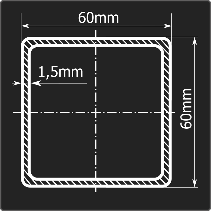 Труба профильная стальная квадратного сечения 60*60мм, длиной 6м и толщиной 1,5мм. Материал - углеродистая сталь. Соответствует требованиям ГОСТ 13663-86. Стандартный пакет: вес - 1,322тн., количество - 81шт.